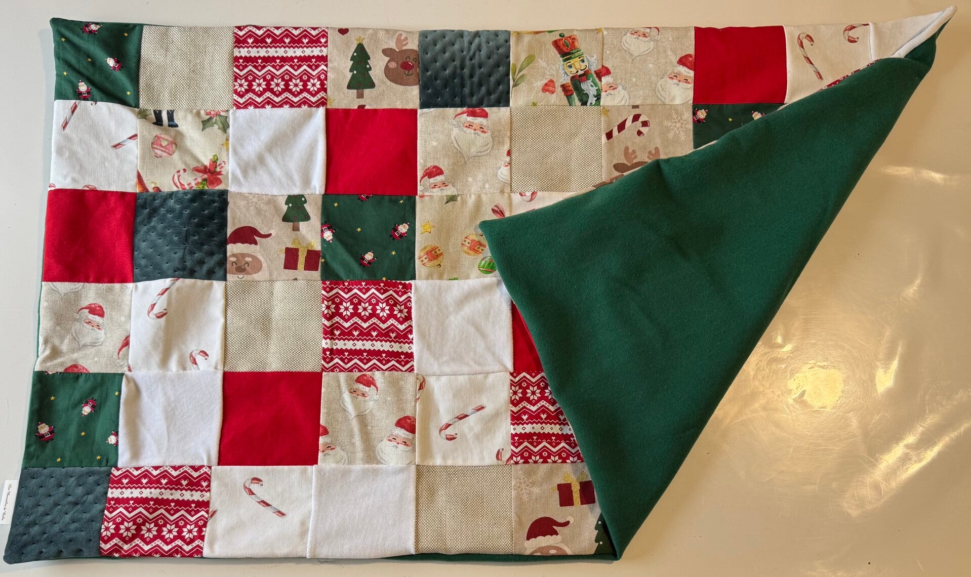 Découvrez notre plaid de Noël, une pièce unique réalisée en patchwork avec des tissus soigneusement sélectionnés dans notre boutique.