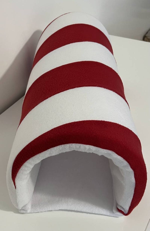 Ce tunnel en sucre d'orge, mesurant 50 cm de long, représente la taille idéale pour accueillir un lapin ou un chat. Conçu avec un souci du détail, ce modèle unique offre un espace de jeu et d'exploration parfait pour vos compagnons à quatre pattes.