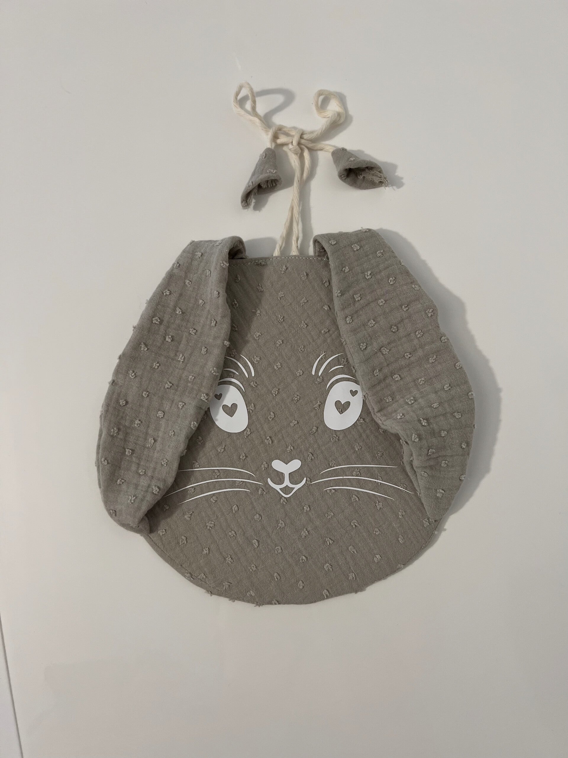 Découvrez une élégante décoration en forme de délicate tête de lapin en plumetis, parfaite pour ajouter une touche de charme à votre intérieur.